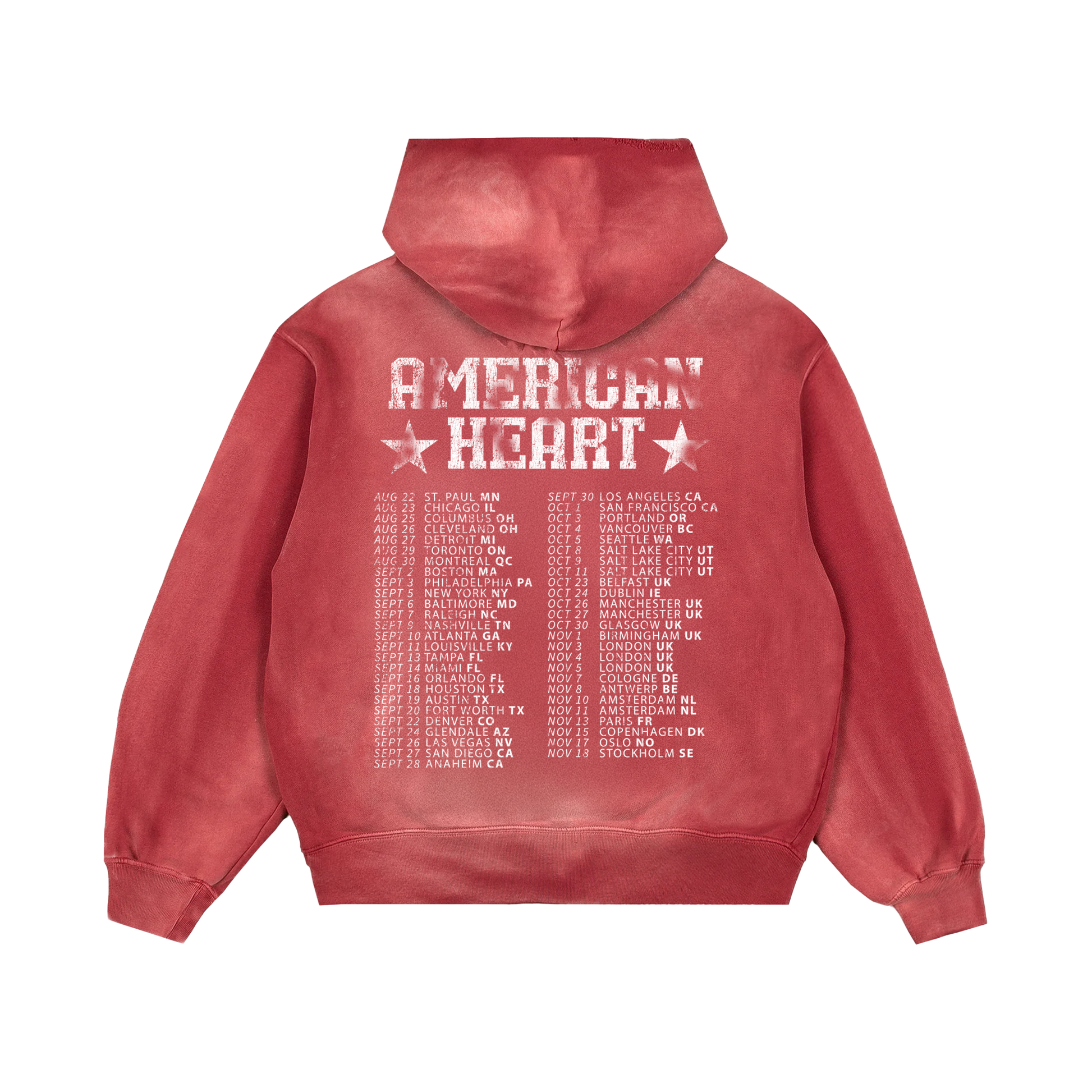 A red unisex hoodie featuring Benson logo design on the front, and dates on the back.